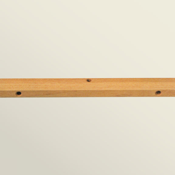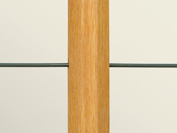 Het frambozenrek bestaat uit palen van robiniahout, die met tussenafstanden van 60 tot 80 cm in de grond worden geslagen, en elastisch hol koord dat horizontaal door de palen wordt geregen op vier verschillende hoogtes, met een tussenafstand van 32 cm. De palen hebben gaten voor het koord met een tussenafstand van 8 cm. Rijg het bovenste koord door het bovenste gat.