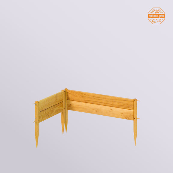 Robinienholz ist für einen Beetzaun das Langlebigste, sofern Sie Holz mögen. Kein anderes Holz hält so lange aus – bei weitem. Lebensdauer von 20 und mehr Jahren ist realistisch, selbst bei schwerem, viel Feuchtigkeit haltendem Boden. Auch mit Fungizid im Hochdruckverfahren imprägniertes Holz kann nicht mithalten.